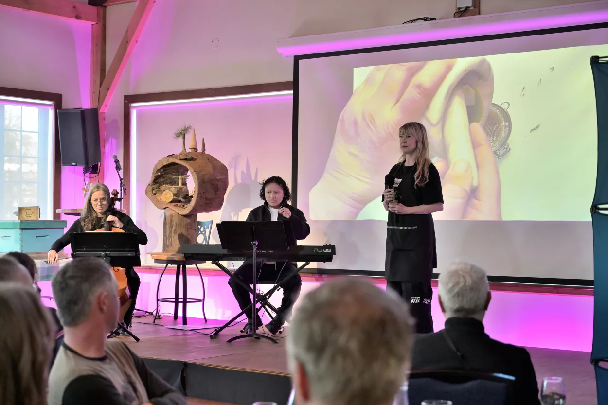 Présenté sous la forme d’un 5 à 7 multisensoriel, l’événement a permis au public de découvrir des créations originales issues de la collaboration entre artistes, productrices et producteurs agricoles, ainsi que cheffes cuisinières et chefs cuisiniers de la région. Ensemble, ces talents ont offert des bouchées inspirées du territoire et des performances scéniques éblouissantes, témoignant de la richesse créative et du savoir-faire d’ici.