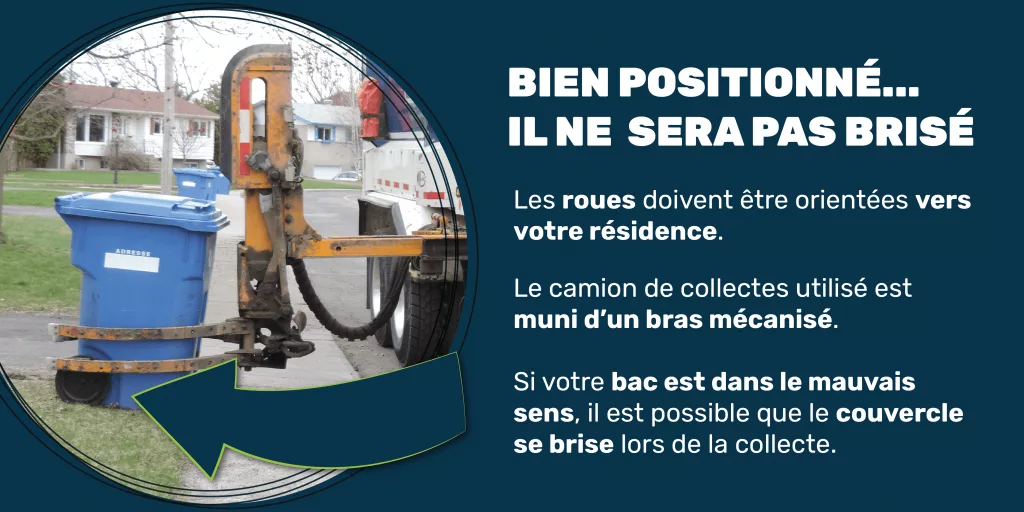 - Assurez-vous que le bac ne présente aucun bris majeur (fissures, couvercle ou roue manquante).